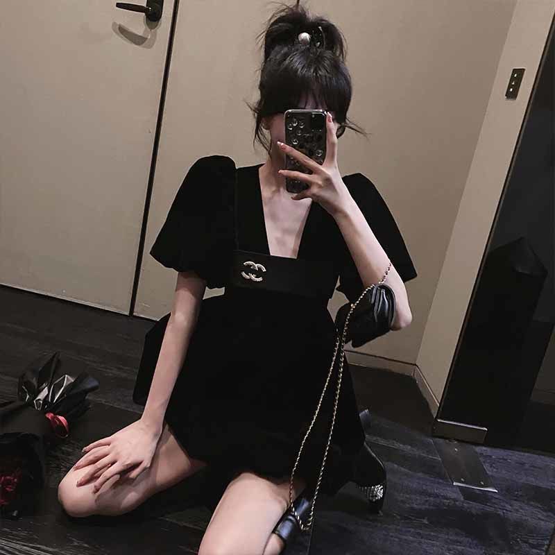 Vestido De Veludo Retro Frances Romantico Com Manga Curta E Decote Em V Shopee Brasil